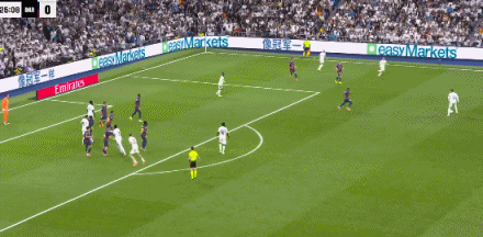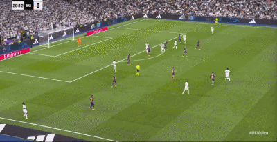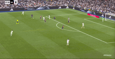 第22分钟,贝林厄姆摆脱后直塞,姆巴佩绝影单刀破门,皇马1-0巴萨!